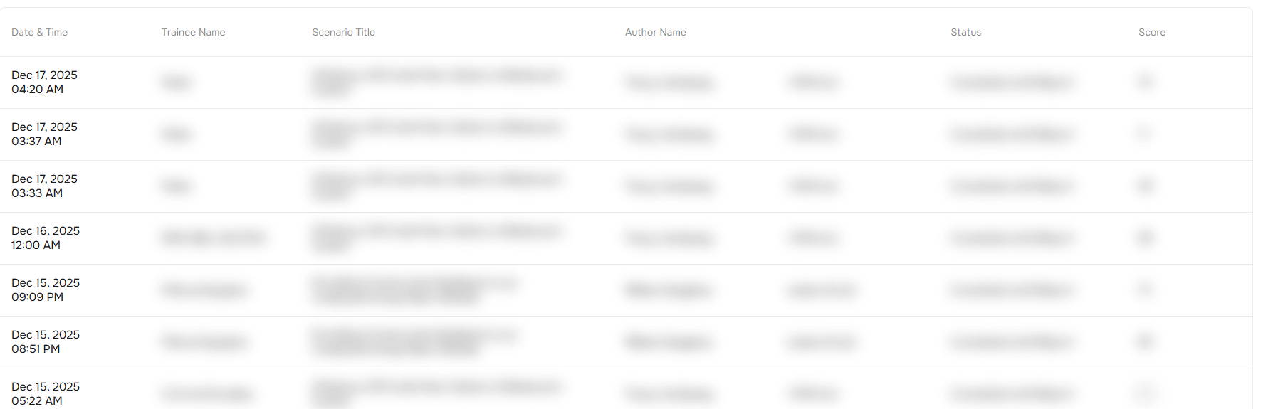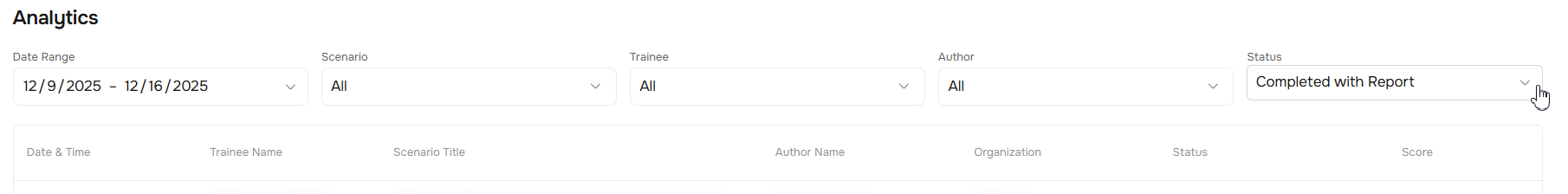 Trainee | Shows the results of the selected employee across all completed scenarios. |
