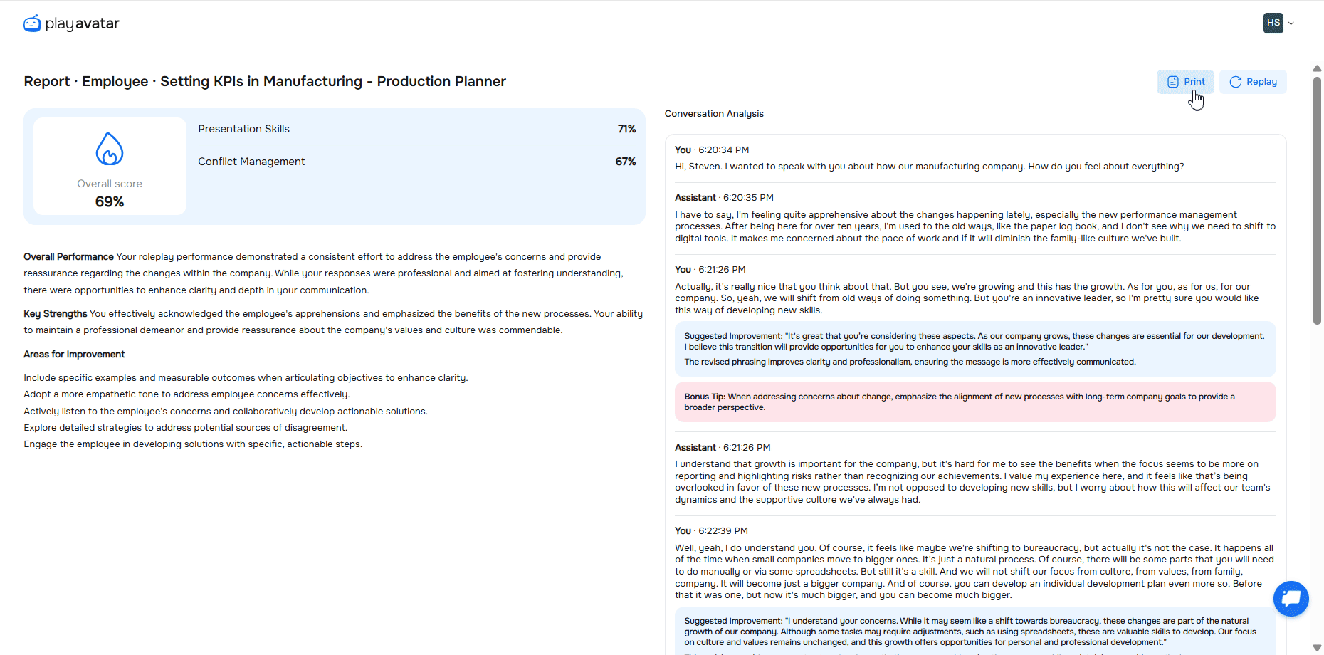Score | Overall AI-calculated score the employee received for completing the roleplaying. |