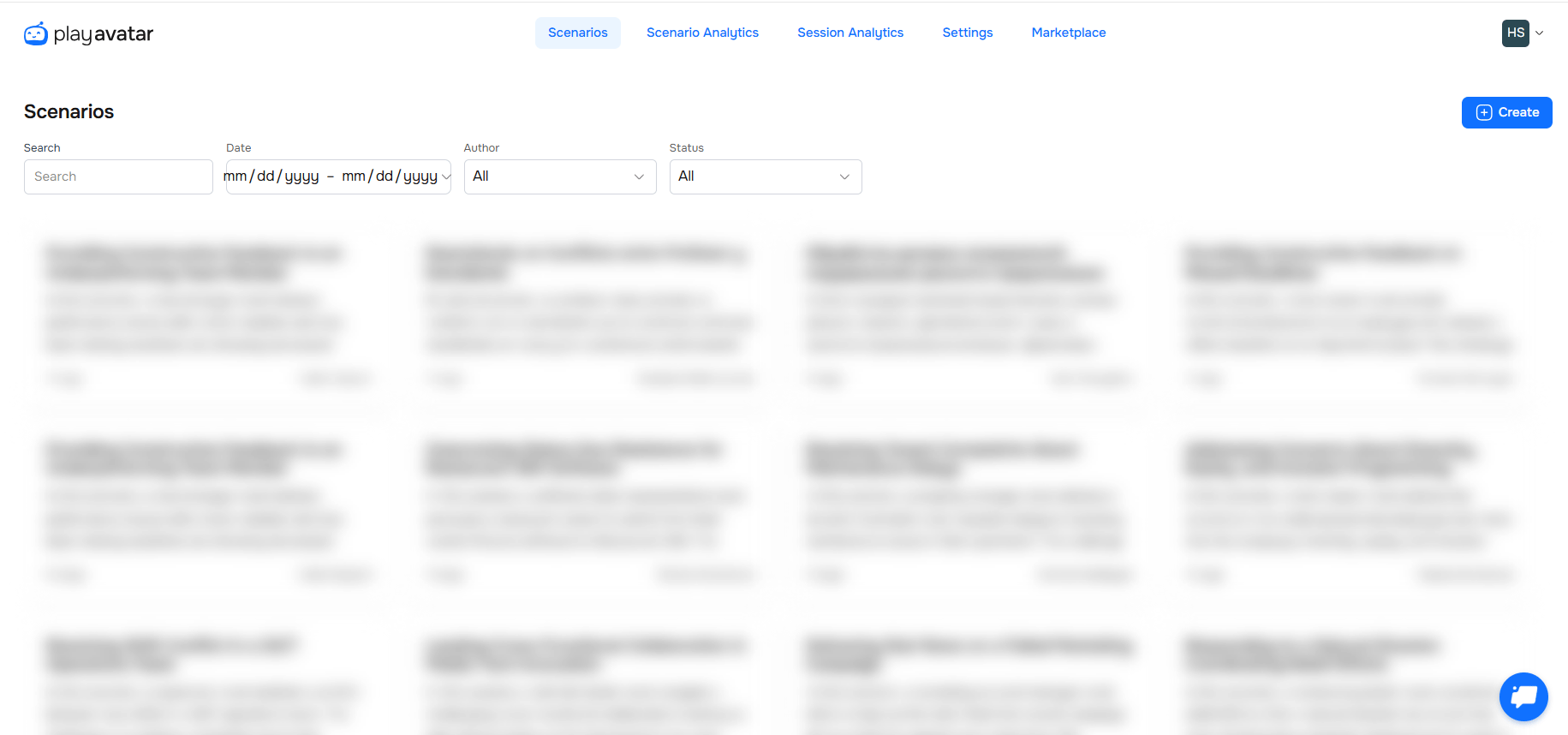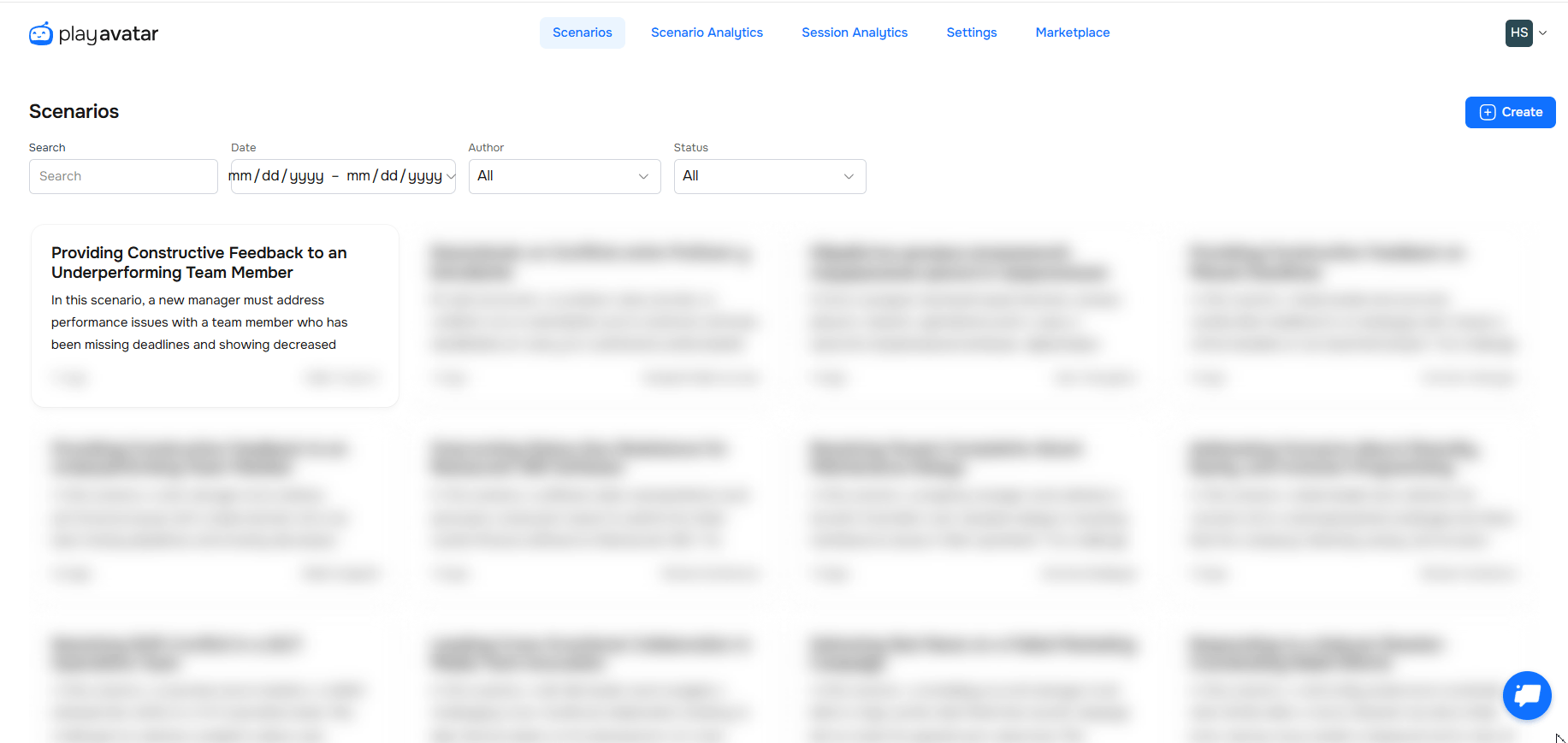 To quickly find the scenario you're looking for, use the search bar and filters at the top of the page. You can search by name, date, author, or access type (public / private).