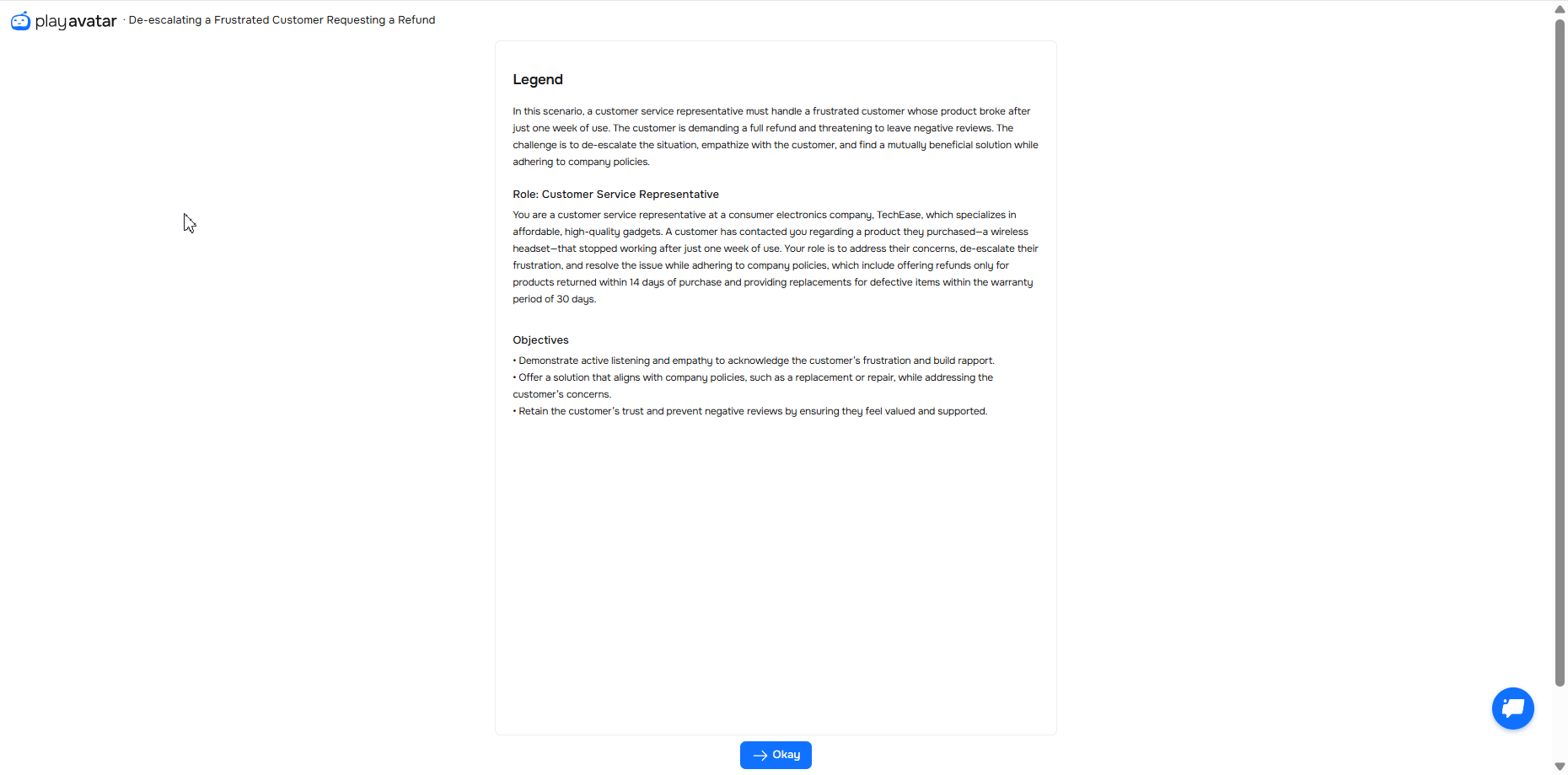 Once you've read the information, click "Okay" to proceed to the roleplay.