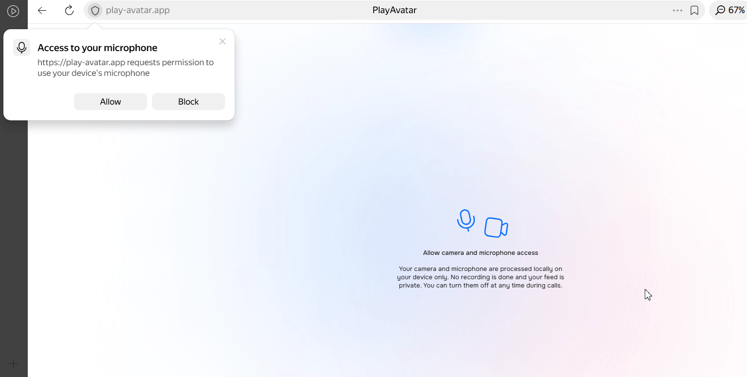 💡 For the best experience, find a quiet environment. The avatar is sensitive to background noise.