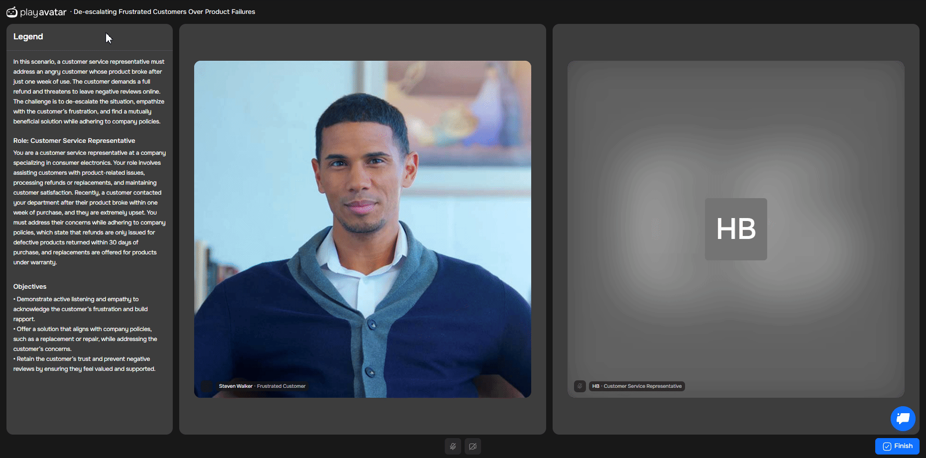 When you're done, click the "Finish" button. You will then see your detailed roleplay report.