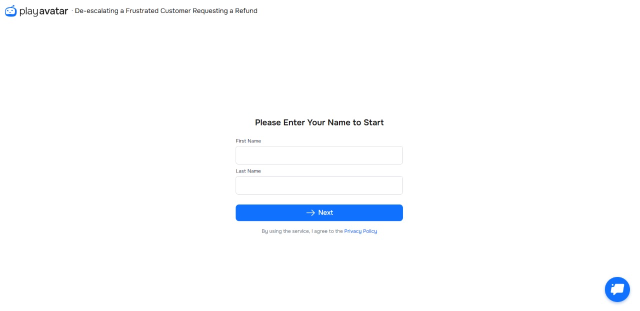Enter your first and last name. This is required to track your results within the organization. Then, click "Next" to continue.