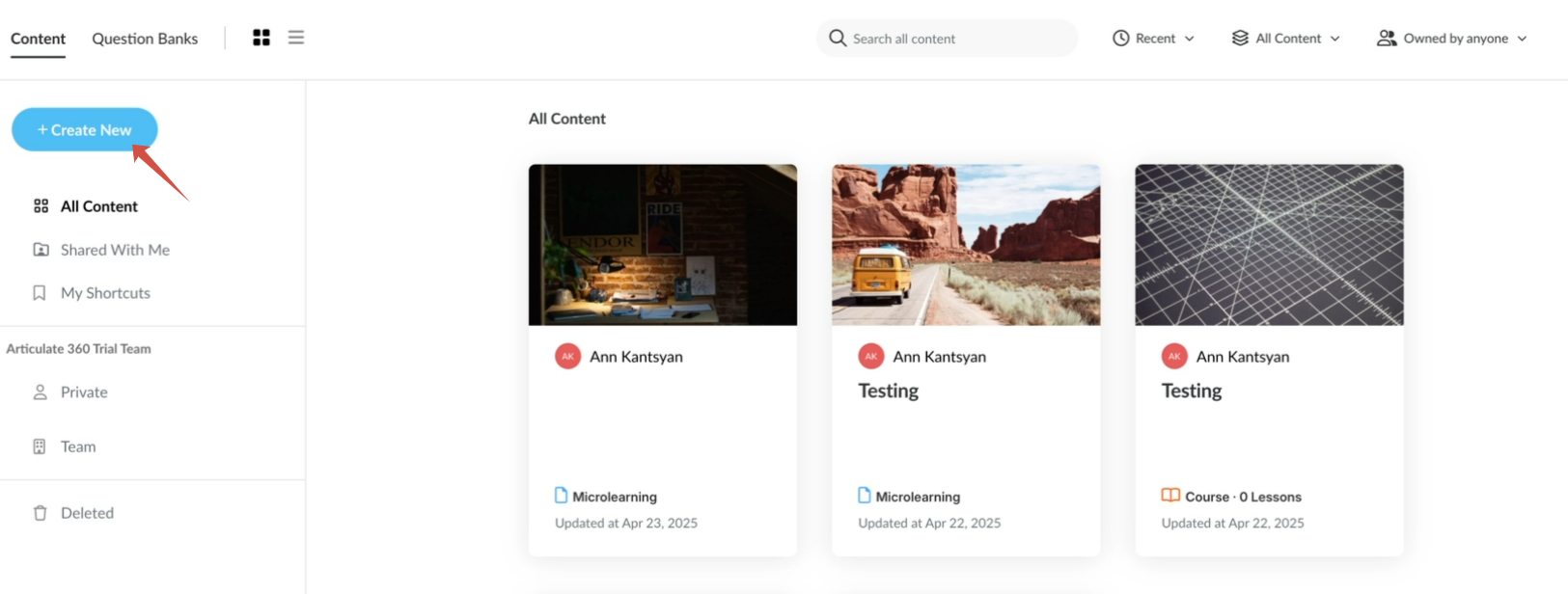 1. Open Articulate 360 and click the “Create New” button.
