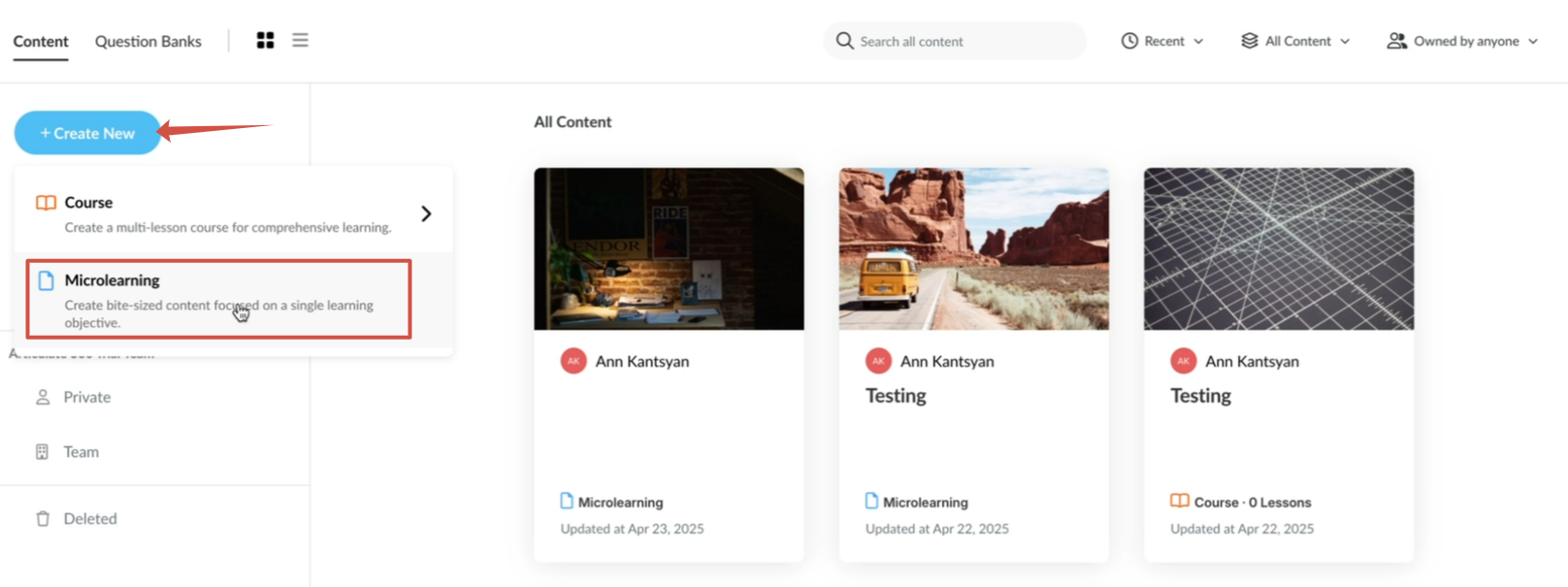 2. Select the course type — "Microlearning".