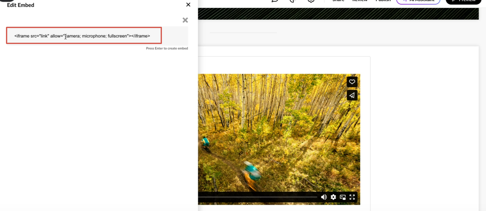 7. Return to the Rise 360 builder and paste the link into the address bar.