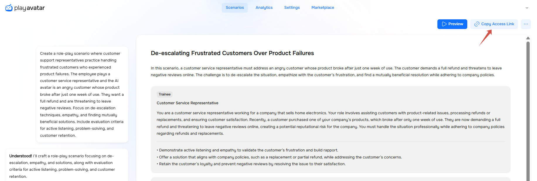 6. On the roleplay page, click the “Copy Access Link” button.